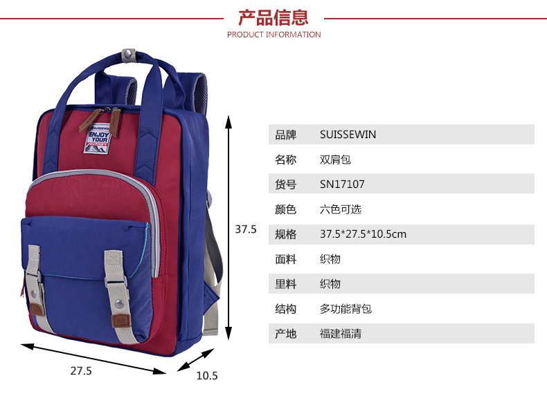 瑞士军刀SUISSEWIN韩版男女学生书包双肩包背包旅行包SN17107