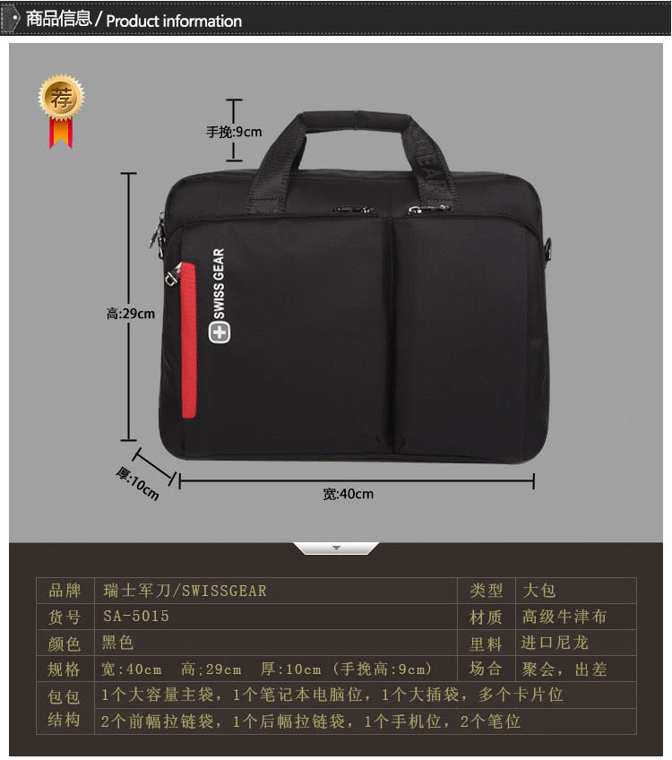 厂家直销15寸瑞士军刀笔记本男士商务单肩斜挎包手提电脑包定制