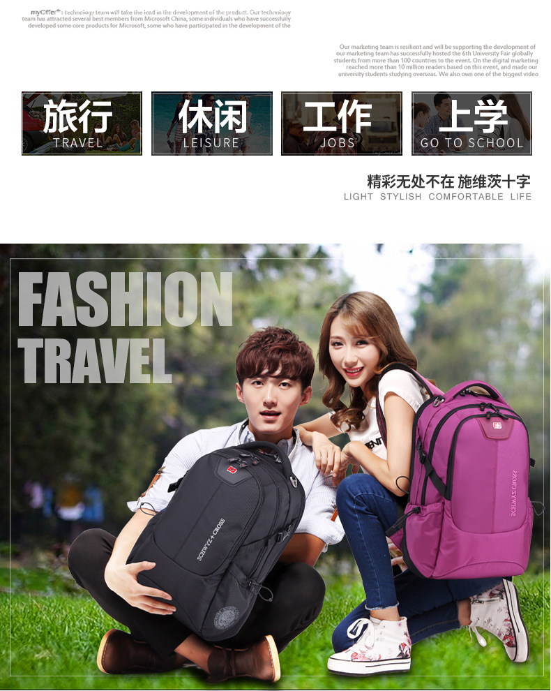 瑞士军刀双肩背包男商务防泼水牛津布旅行包笔记本电脑包定制批发