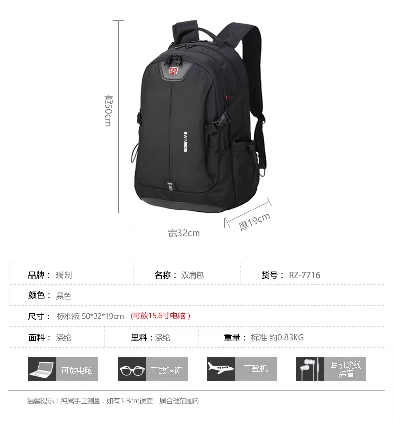 【专业定制】瑞制双肩包印字LOGO大容量商务背包男电脑包旅行
