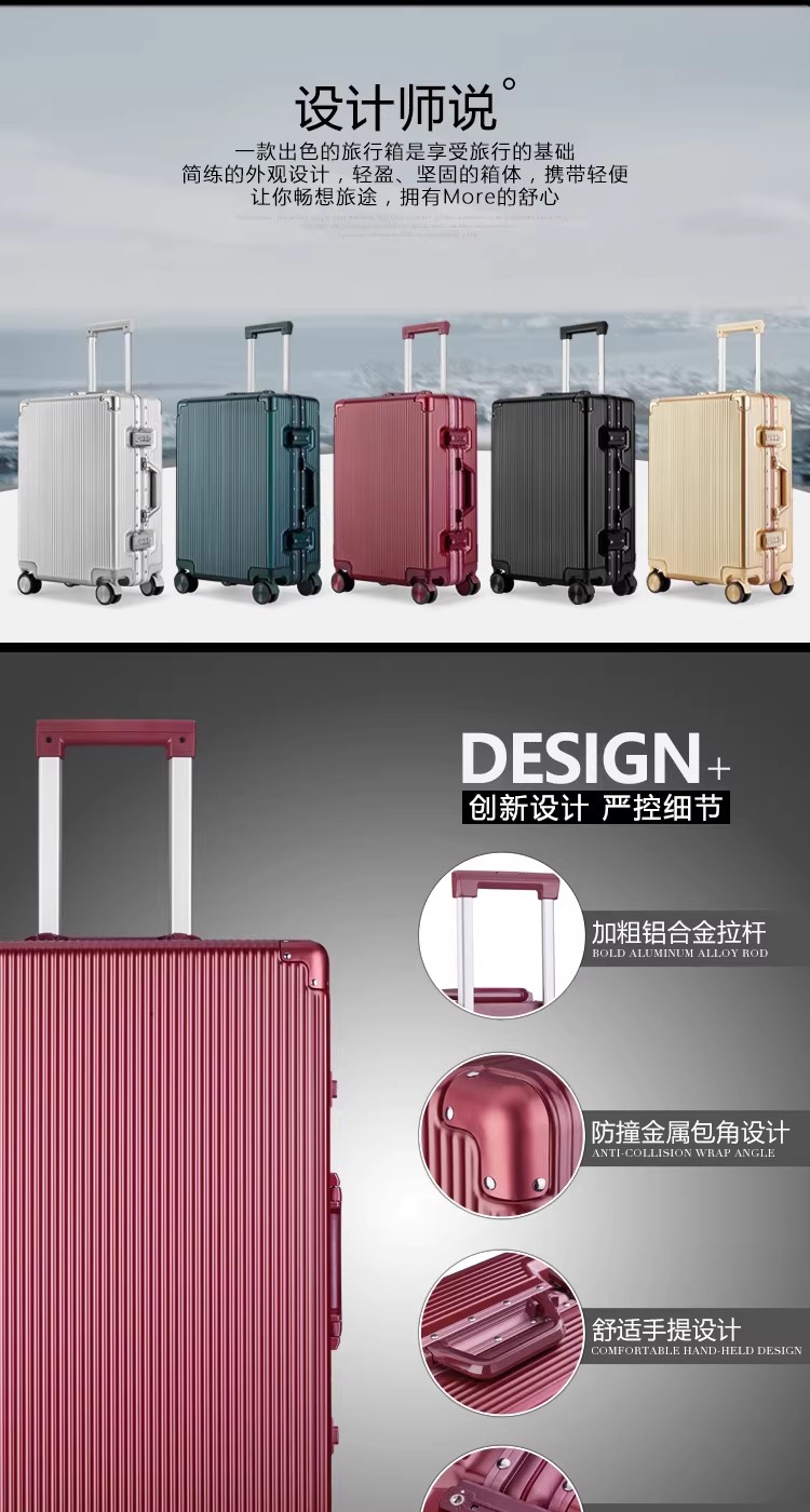 【专业定制】瑞制拉杆箱男女铝框行李箱登机LOGO高中大学生印字