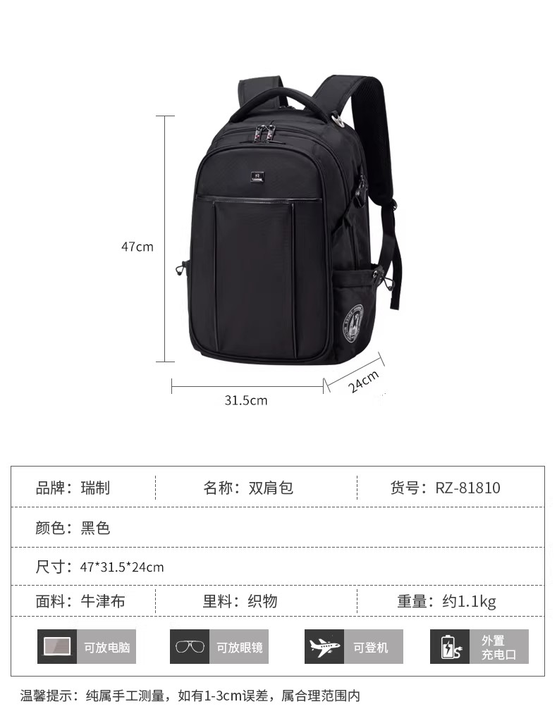 欧美商务双肩包印LOGO大容量牛津布背包男学生电脑包