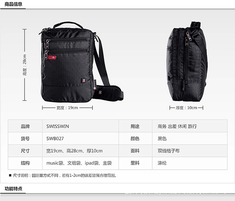 SWISSWIN瑞士军刀新款男士单肩包韩版男包运动休闲斜挎包SWE1025