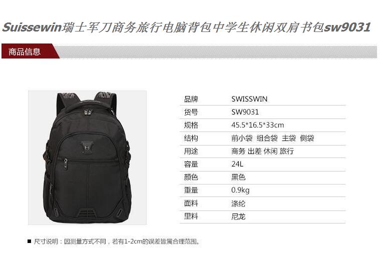 suissewin专柜正品商务休闲双肩包电脑包防水sw9031运动包