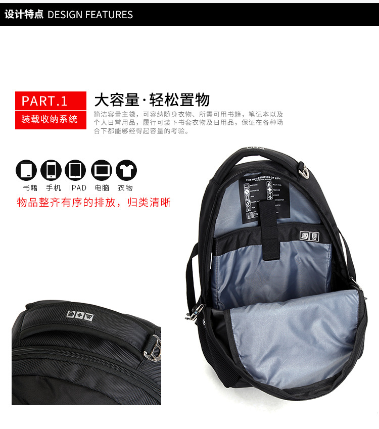 SUISSEWIN商务男潮电脑大容量双肩包防泼水减震户外旅行休闲背包