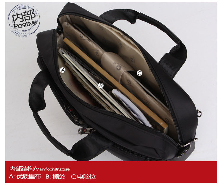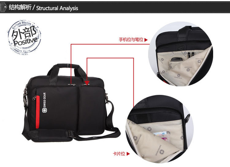 厂家直销15寸瑞士军刀笔记本男士商务单肩斜挎包手提电脑包定制