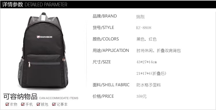 【专业定制】瑞制双肩包折叠旅行包运动背包书包logo网红同款