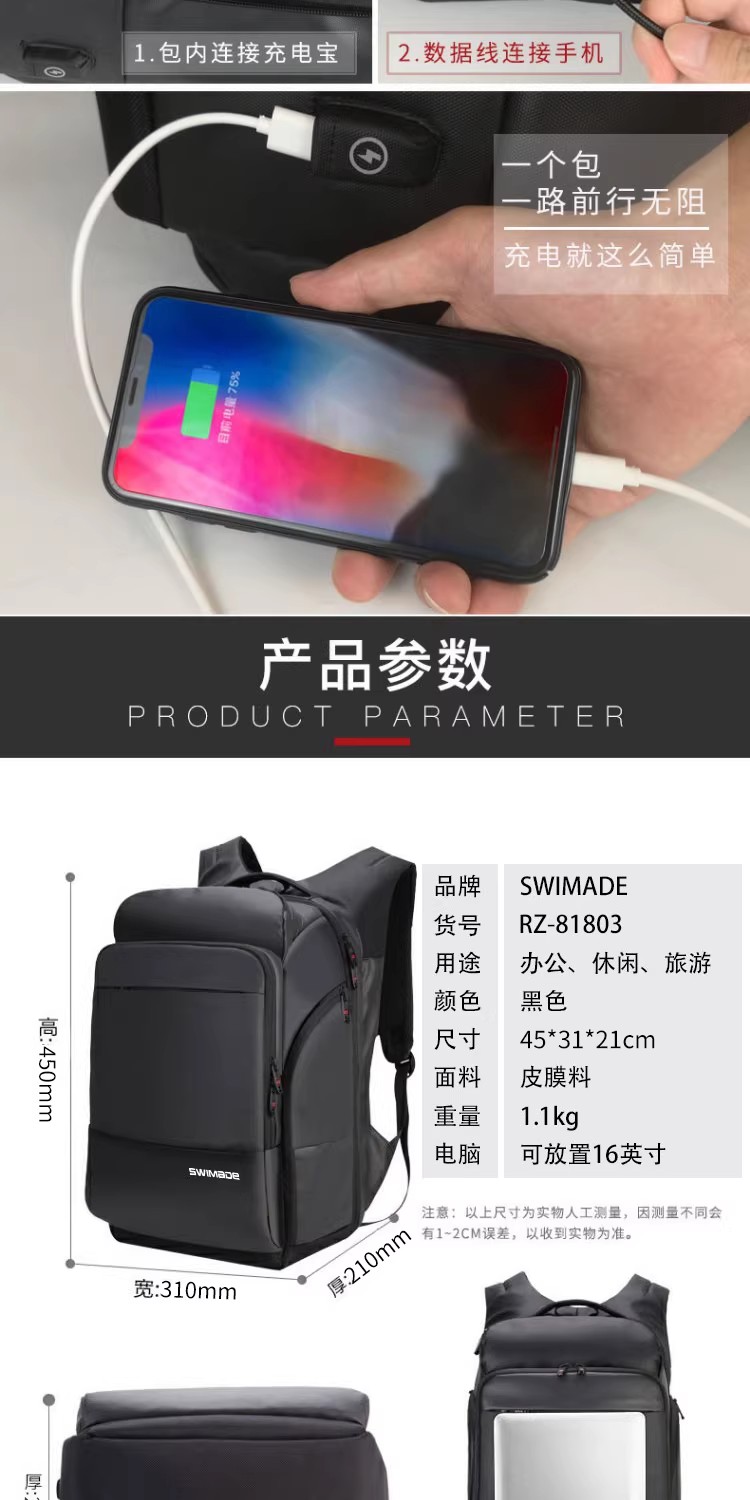 商务时尚休闲运动双肩背电脑包男印LOGO