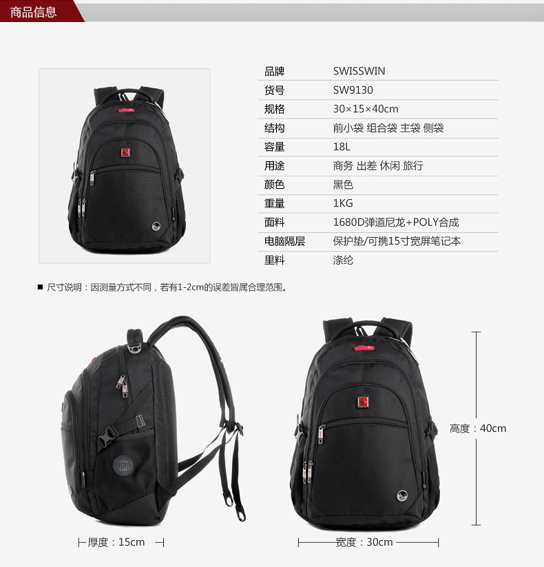 正品SWISSWIN瑞士军刀双肩包 中学生书包男士电脑包休闲旅行背包